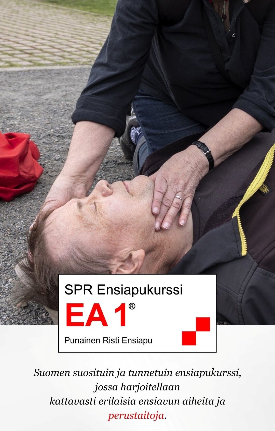 Ensiapukurssi 1 -koulutuksen tavoitteena on lisätä auttamisrohkeutta hätäensiapua vaativissa tilanteissa sekä arjen pienemmissä tapaturmissa.